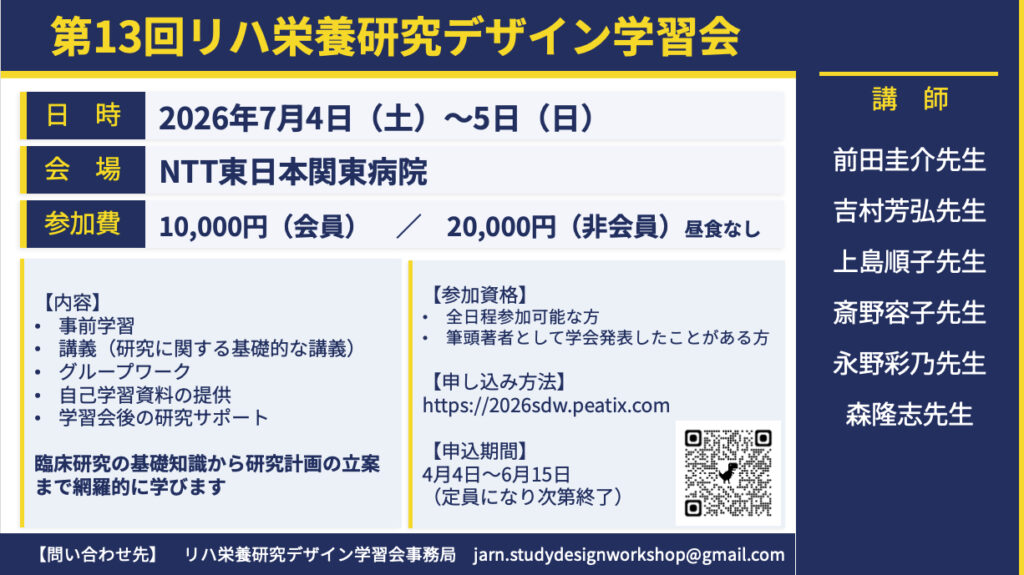 問い合わせ先 リハ栄養研究デザイン学習会事務局 jarn.